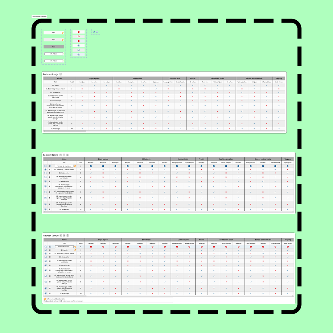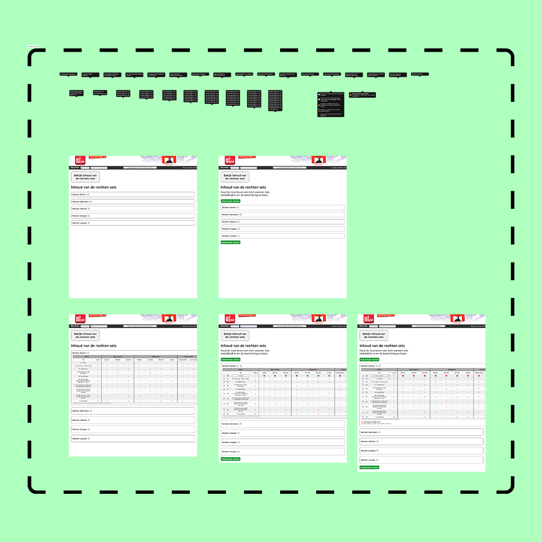 Het maken en opzetten van rollen binnen een systeem was erg technisch. Dit zorgde er voor dat het onoverzichtelijk was en moeilijk te begrijpen was voor nieuwe gebruikers. Ik heb daarom een nieuwe opzet gemaakt die uiteindelijk ook word uitgewerkt binnen de software.